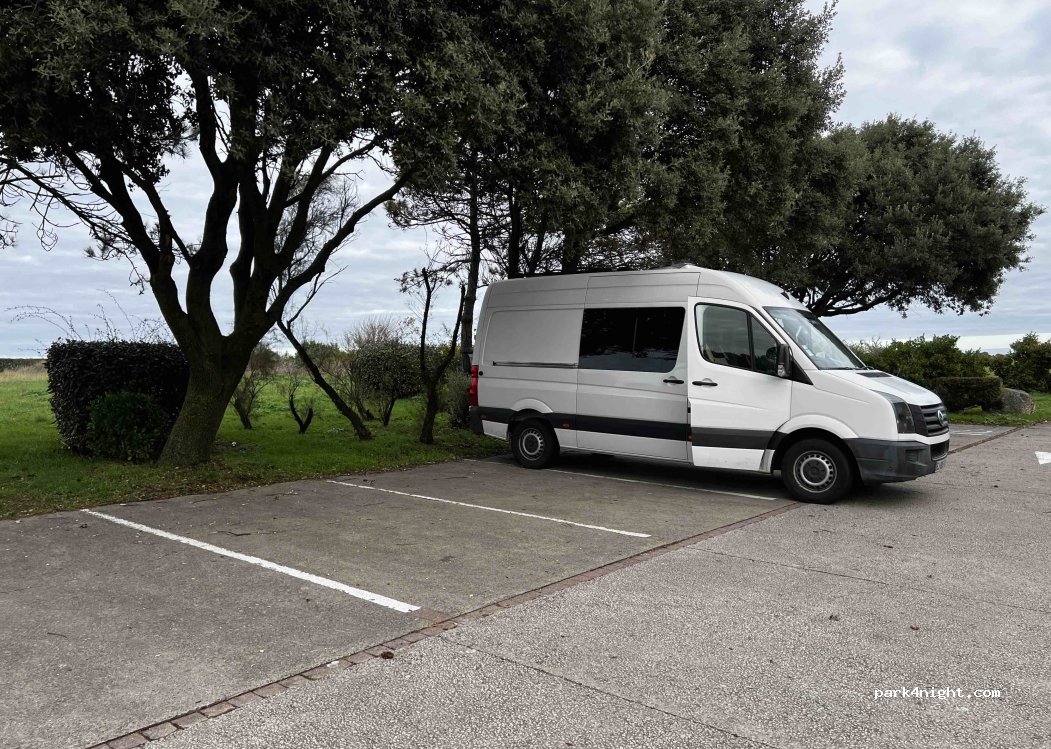 Parking sans commodité, mais tranquillité assurée. Balades des 2 côtes.Très bon accueil de cette commune qui accepte volontiers les nuits en bord de mer, de même les locaux, sur de petits parkings forts pratiques.