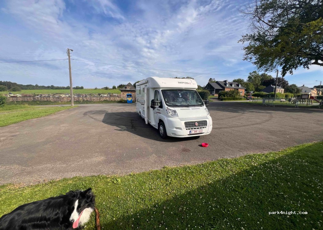 Parking between the Cemetery and the football field. Quiet place at the entrance of the village. No ban sign for motorhomes. No service.