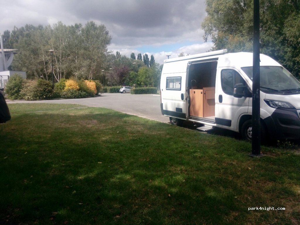 Parking to spend the quiet night next to the Indre and the pool. very quiet and nice corner where children can let off steam in the meadow and his fitness trail. In addition it's flat.