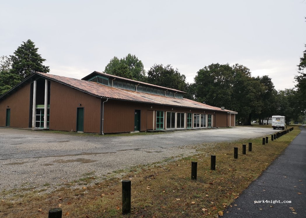Immense parking sur sable/gravillon, plan entre salle des fêtes et piste cyclable Aucun service sauf, tranquillité.