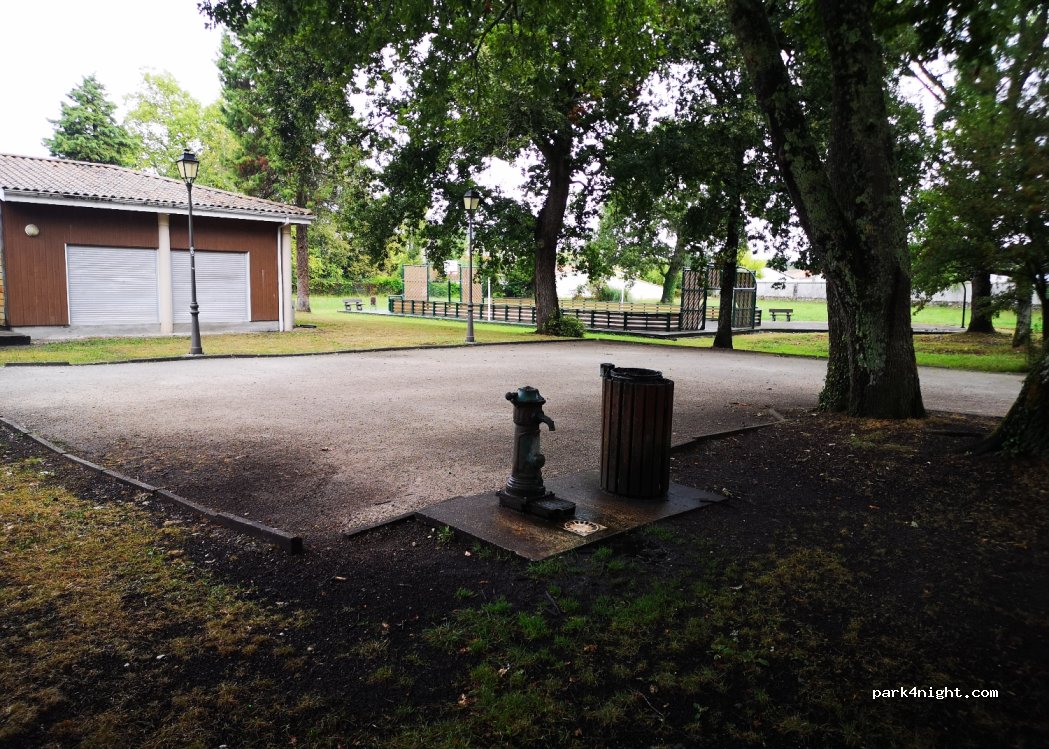 Small green area to Salaunes village hall very quiet, lots of picnic table small drinking water terminal for toilet and dishes, playground for football and basketball along the bike path. Pétanque pitch also