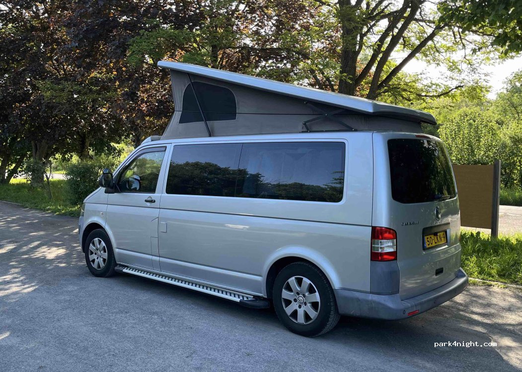 Endroit très bien pour passer une nuit.nous l'avons fait avec nos trois enfants et avons apprécié l'espace à proximité. Hauteur limité 2m10 parfait pour les vans.