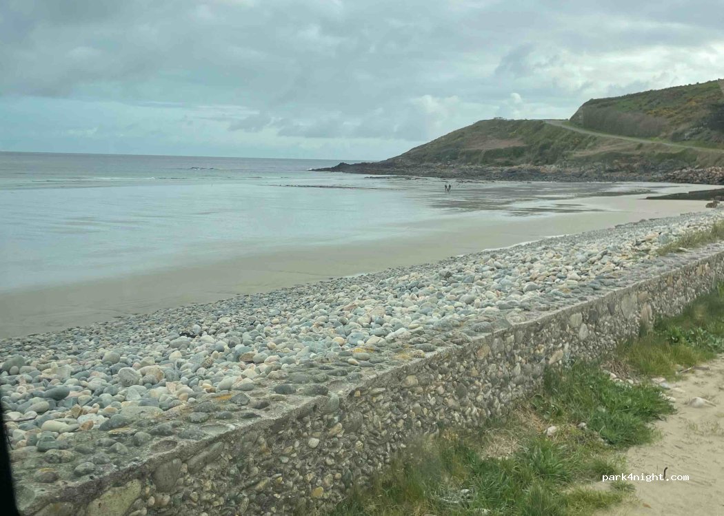 Parking sympa au bord de la plage mais bruyant à marée haute, du vent et des embruns. Le parking juste au-dessus 200 m en suivant la route est beaucoup mieux pour la magnifique vue et beaucoup plus calme pour dormir. Pas de service.