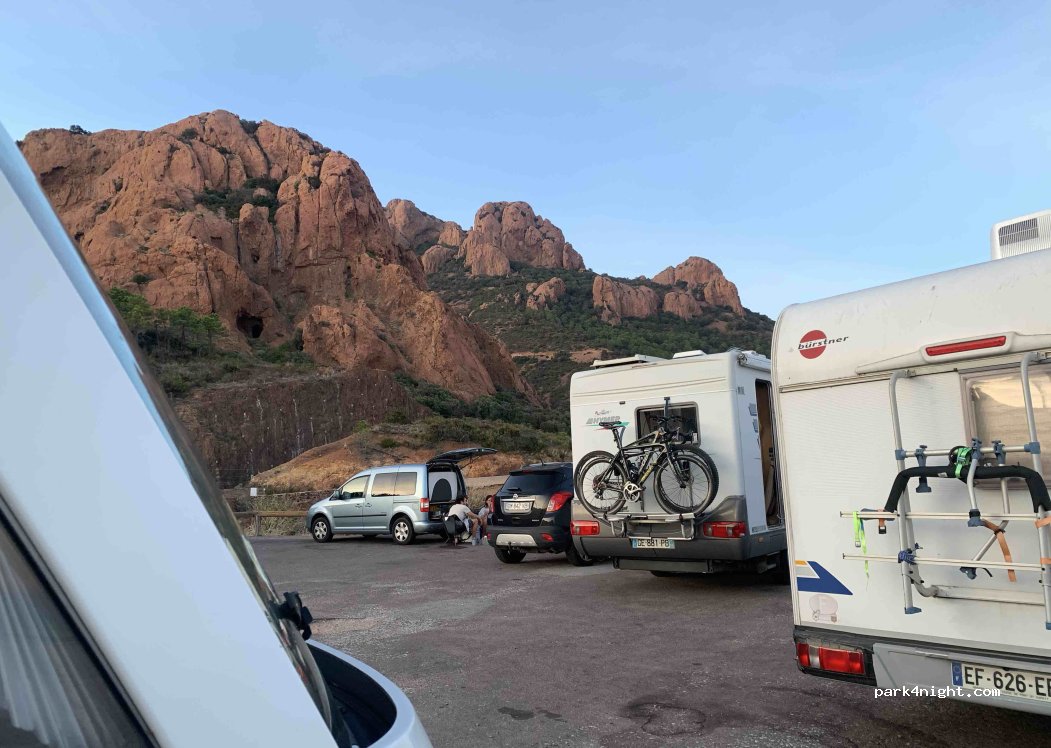 je confirme superbes paysages. Pas de ballades possibles car en bordure de route. Pour ma part j'en ai profité pour lire au soleil tout en profitant des paysages. D'un côté Les Esterelles de l'autre les calanques de St Raphaël. Ce soir nous sommes 5 CC à rester pour la nuit. un peu de passage qui devrait s'atténuer pour la nuit