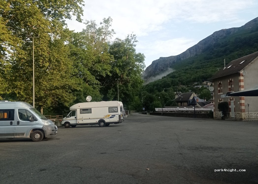 Endroit plutôt calme et agréable. Accessible en caravane. Bel endroit au bord de la Garonne entouré des montagnes. Nous avons passé une bonne nuit. la route pour l'Espagne n'est pas loin mais avec les frontières fermées, peu de passage (juste poids lourds)