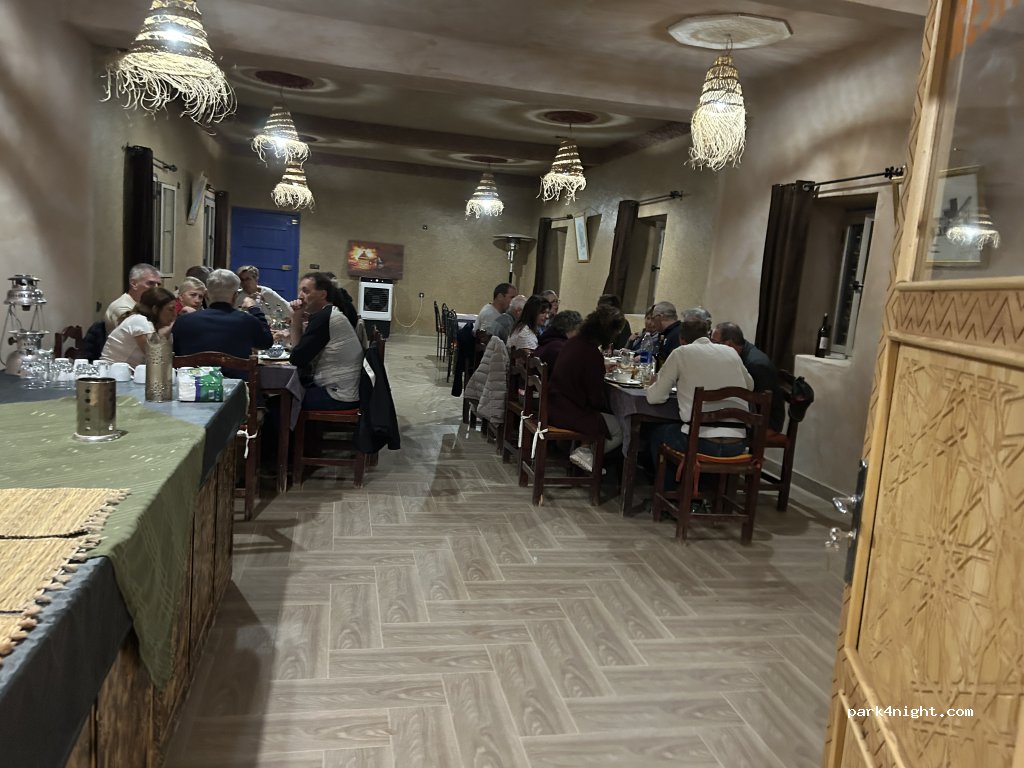 L'auberge offre confortevoli camere private, tende tradizionali del deserto e un'ampia area per camper e roulotte. Gli ospiti possono rilassarsi, gustare la deliziosa cucina marocchina fatta in casa e sperimentare la calda ospitalità berbera.
