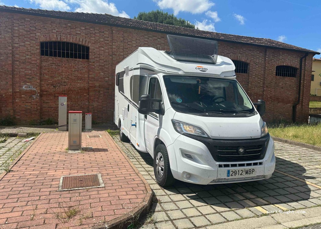 Bij het treinstation (met vervoer richting Siena), maar geen last gehad van het geluid. Dicht bij een Carrefour en een Penny. Mooie verharde plekken. Vier stroom punten, maar twee plekken zijn boven de afvoerput gesitueerd. Tot 7,5 meter lang en 2,2 breed goed te doen. Gezellig dorpje om te bezoeken. Dank aan de gemeente Sinalunga voor de verzorgde, schone plek.