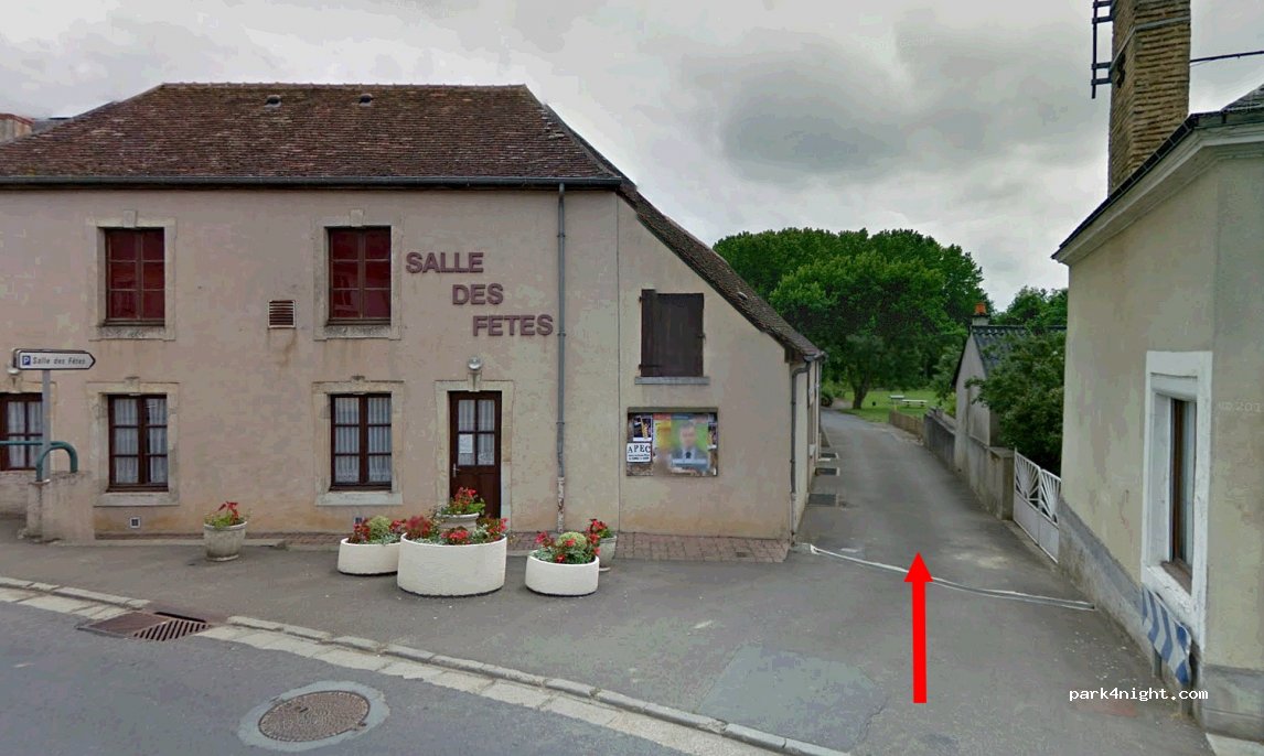 j y suis resté plusieurs jours. calme plat . point eau potable wc face à l' église . ( miteux ) .en ruine. attention beaucoup de moustiques. des ânes à proximité. bruit si soirée salle des fêtes. barre à 2 mètres. etroit . teardrop ou voiture aménagé uniquement. adresse rue du renom . boulangerie et boucherie ok .
