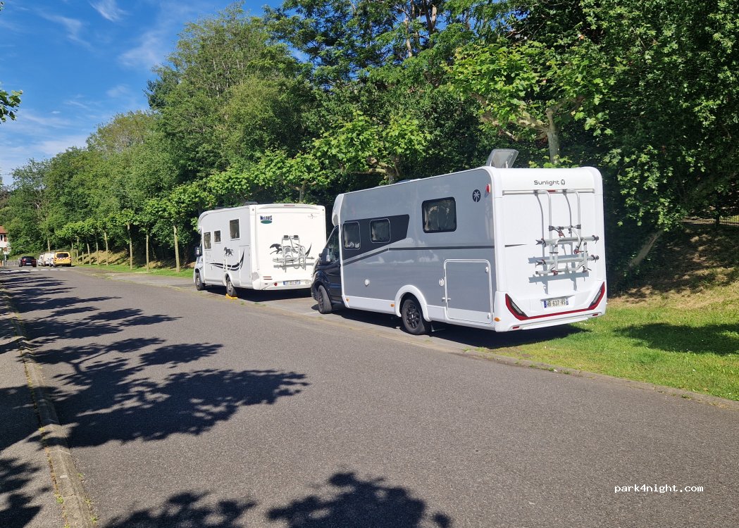 Bien en dépannage. Mais quasi le seul endroit pour dormir en ce jour. Nous voulions dormir sur Hendaye mais apparemment les camping-cars n'y sont pas bienvenus. Passage de voitures et de bus à 50 cm du camping-car à partir de 6h et ce jusqu'à 22h.