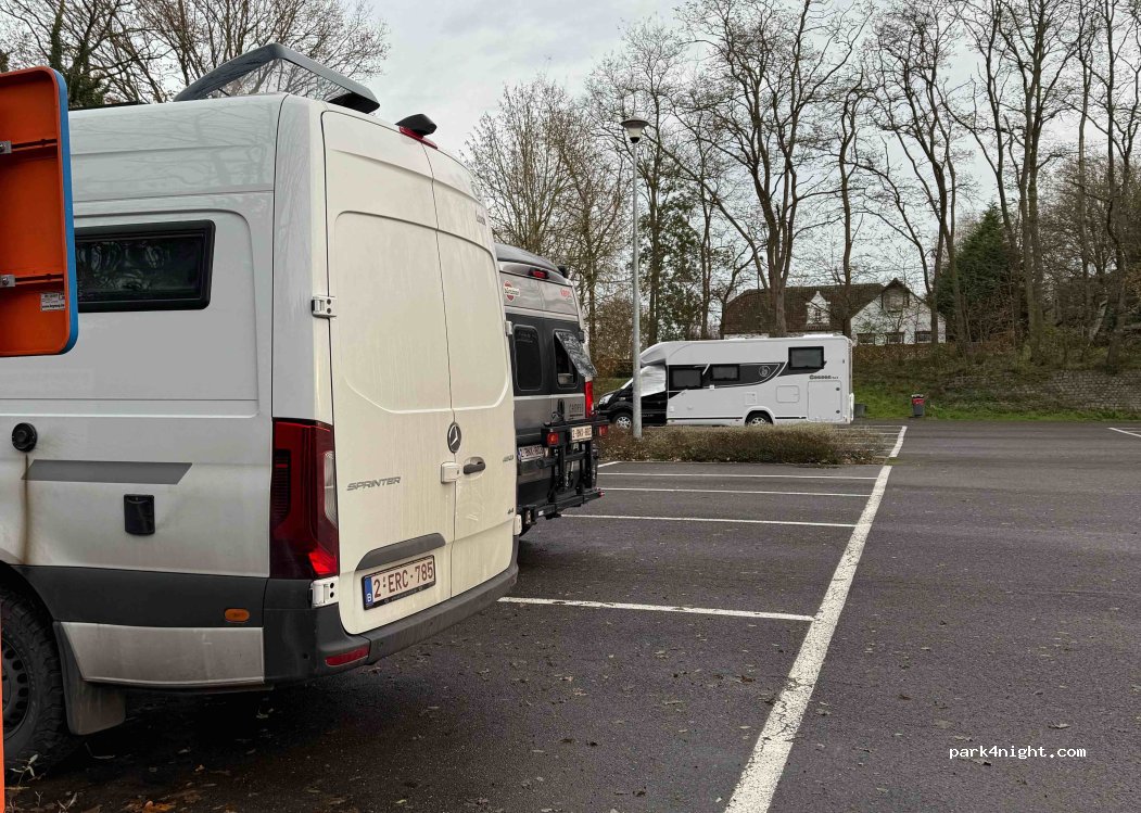 Mooie rustige camperplaats . Is wel op op de parking van de lokale voetbal dus tijdens seizoen regelmatig auto’s op de parking. De lokale heemkundige kring is hier ook en die mensen hebben het niet altijd door dat je niet op één mobilhome mag parkeren . Hier vertrekken ook mooie wandelingen waarvan de kleinste 11,4km is . Wij komen zeker nog eens terug .