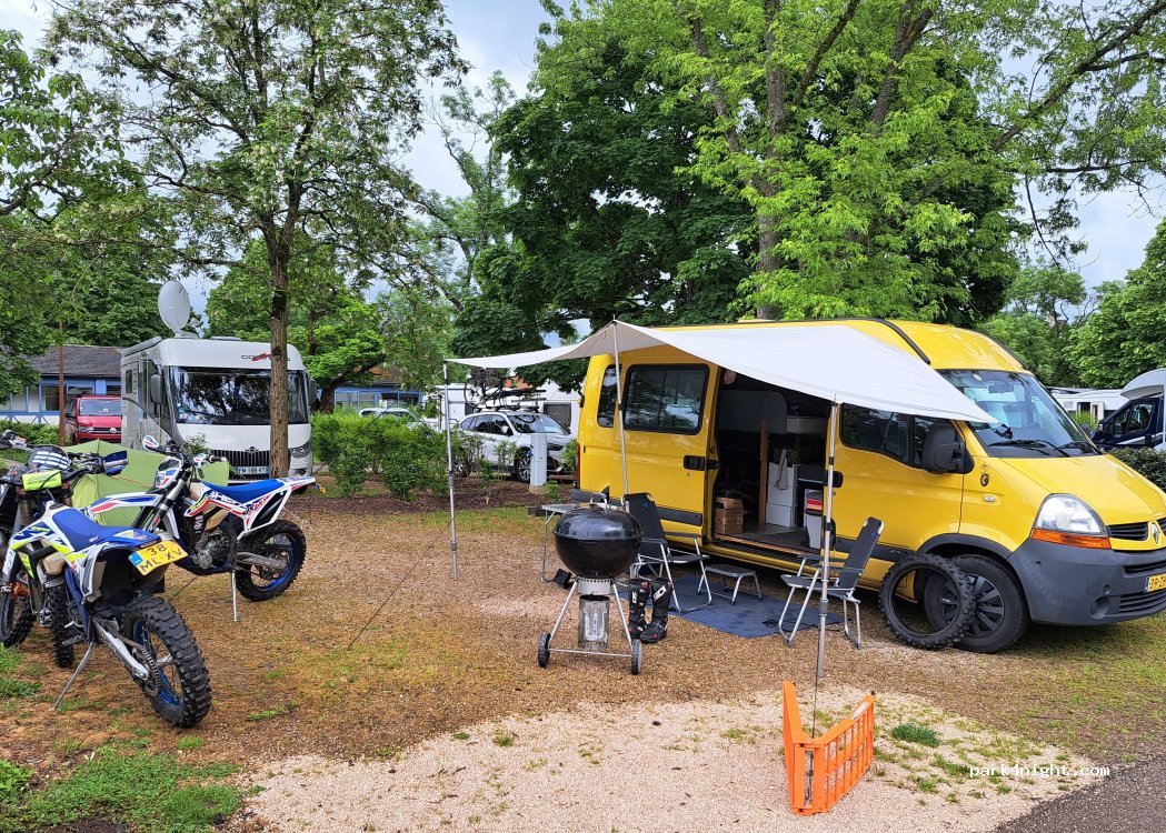Brilliant campsite catering for small tents, caravans and motorhomes of various sizes- we did manage to reserve a pitch and in high season would recommend as it was busy- but due to sprawling nature and good sized pitch’s didn’t feel it - facilities great hot and cold water- warm showers included- good dish and clothes washing area - bbq area - play area - on site restaurant ( although not tested) breakfast service- good for visiting Beaune centre - bargain for us €17 for Mhome 2 people and free dog- only downside no toilet seat but very clean