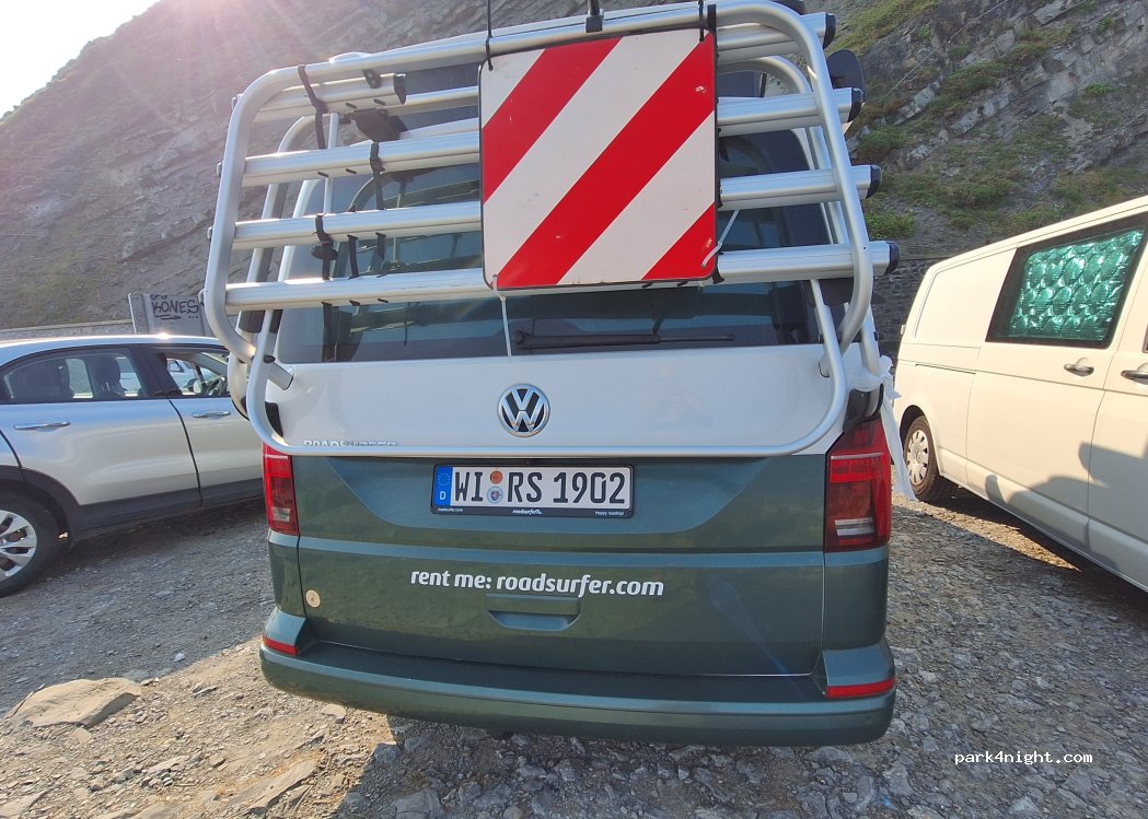 Extraordinary place right next to the huge breaks. Being rather thin, van roof tents will shy away when it comes to letting the roar tingle your ears - it‘s friggin loud yet magnificent up there. The concrete establishment down the gravel path adds a weird industrial unnatural feel to the place.