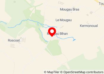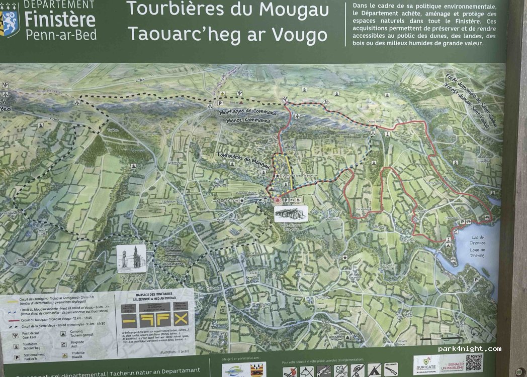 Très tranquille avec une vue sur les Monts d’Arree . Terrain assez plat avec des tables de pique-nique sur un terrain au dessus