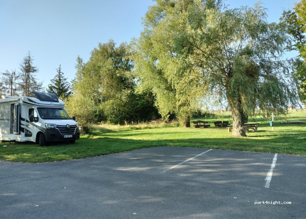 Nous avons passé une bonne nuit ici au bord de l'étang, parking plat, avec petit parc d'enfants, table de pique nique, poubelle. Calme pendant la nuit, quelques pêcheur, randonneurs etc... le matin mais rien de dérangant.