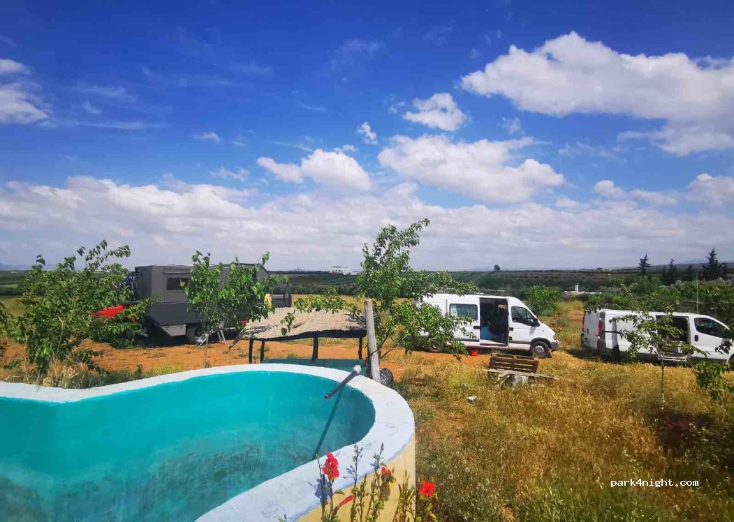 On a passé 3 super nuits chez Sophie et Hamid. Un plaisir de discuter et de prendre le thé avec eux. Les enfants ont adoré gambader sur leur beau terrain et caresser chiens, chat, ânes et moutons. Sophie propose d'accompagner à la Médina de Fes, ce dont on a profité avec joie. On a également acheté un panier de fruits/légumes du jardin, un délice. Prévoir des cales pour mettre le van/CC à plat.