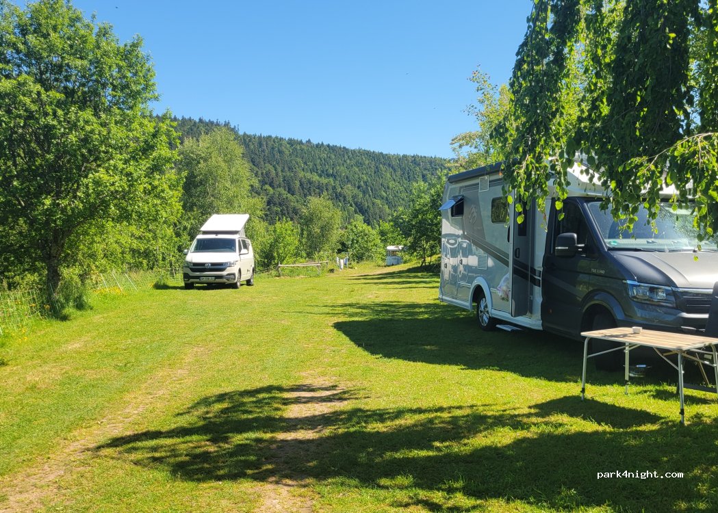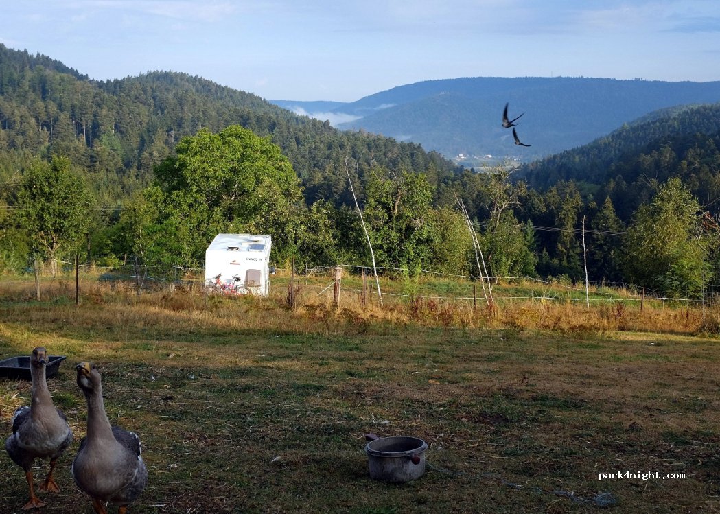 Op onze doorreis naar de Alpen, zijn wij dit magische plekje tegengekomen. Verstopt aan de oostkant in de Vogezen vind je hier rust, natuur en wandelplezier. Het sanitair ziet er verouderd uit, maar is schoner dan op de meeste plekken Er zijn honden op de boerderij, lopen niet meer los, en kunnen in het begin blaffen aangezien je hun erf op komt. Met onze hond hebben wij er verder geen last van gehad