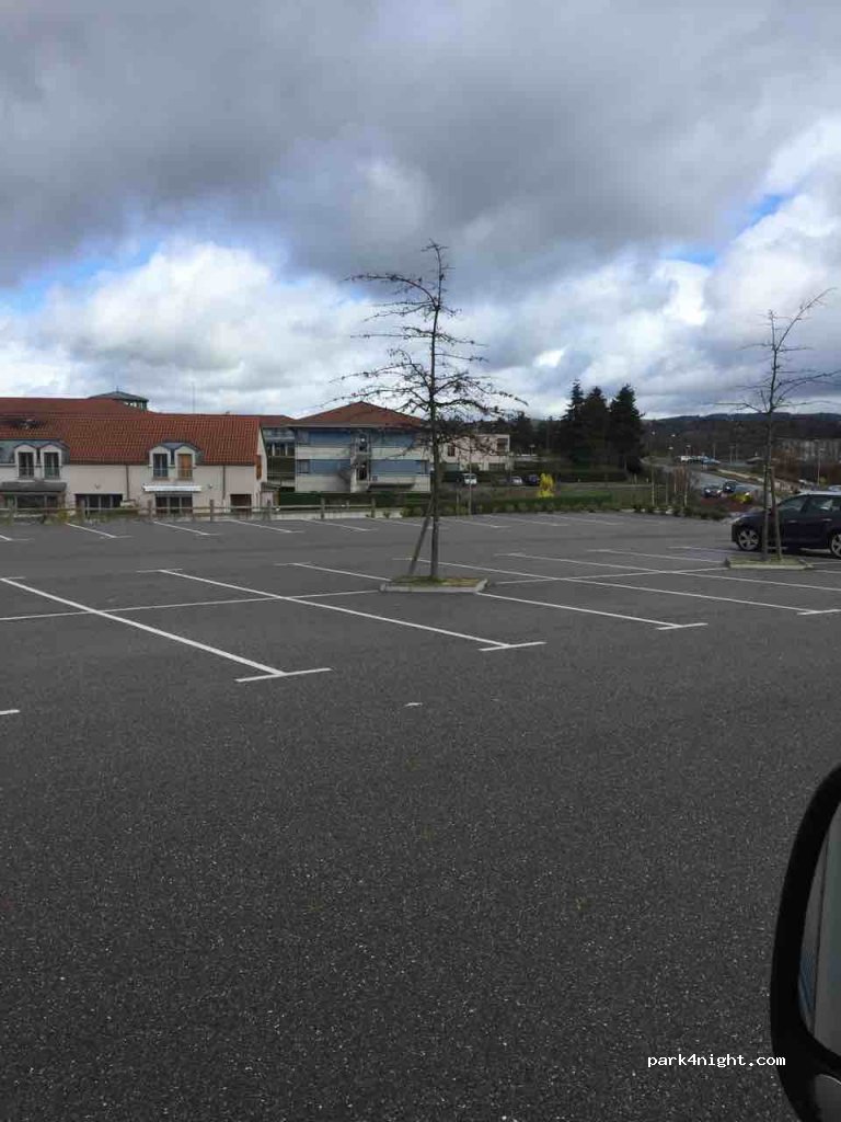 Attention parking de la piscine ferme à 22h! Nous avons dormi un vendredi soir sur le petit parking juste avant. Un cinéma et une brasserie à côté et une belle vue sur la ville. Pas de service.