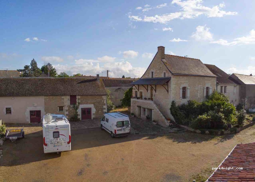 Un lieu super calme non loin de Saumur;et un accueil fort sympathique pas de vidage des eaux pour l’instant mais l’emplacement et l’électricité sont gratuites ainsi qu ´une dégustation des produits dans la soirée et n ´hésitez pas a acheter quelques bouteilles de ses vins ils sont excellents .