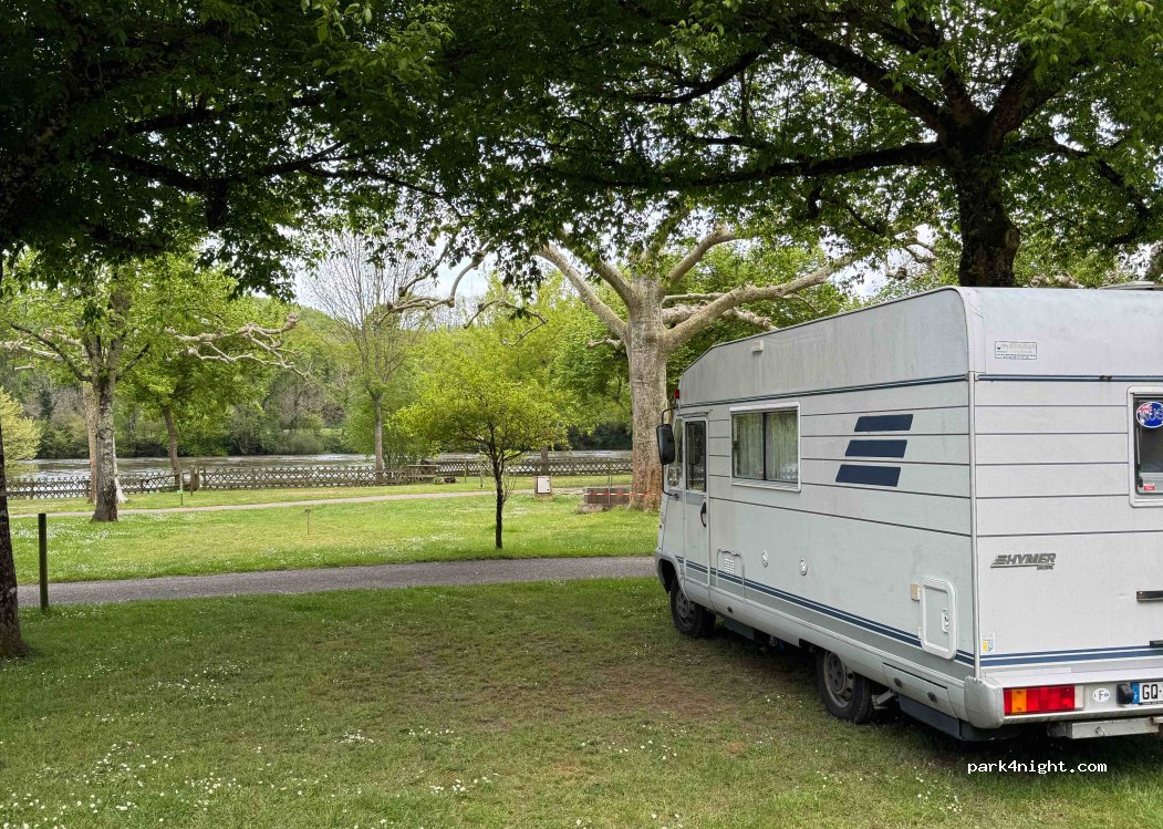 17 € pour un emplacement sur l'aire camping-car, c'est plus cher que certains grands sites touristiques et sans accès aux sanitaires du camping, donc on a pris un emplacement au camping rien d'exceptionnel non plus aucune intimité, pas de séparation entre les emplacements des sanitaires plus qu'ordinaires, le seul charme est la Dordogne.