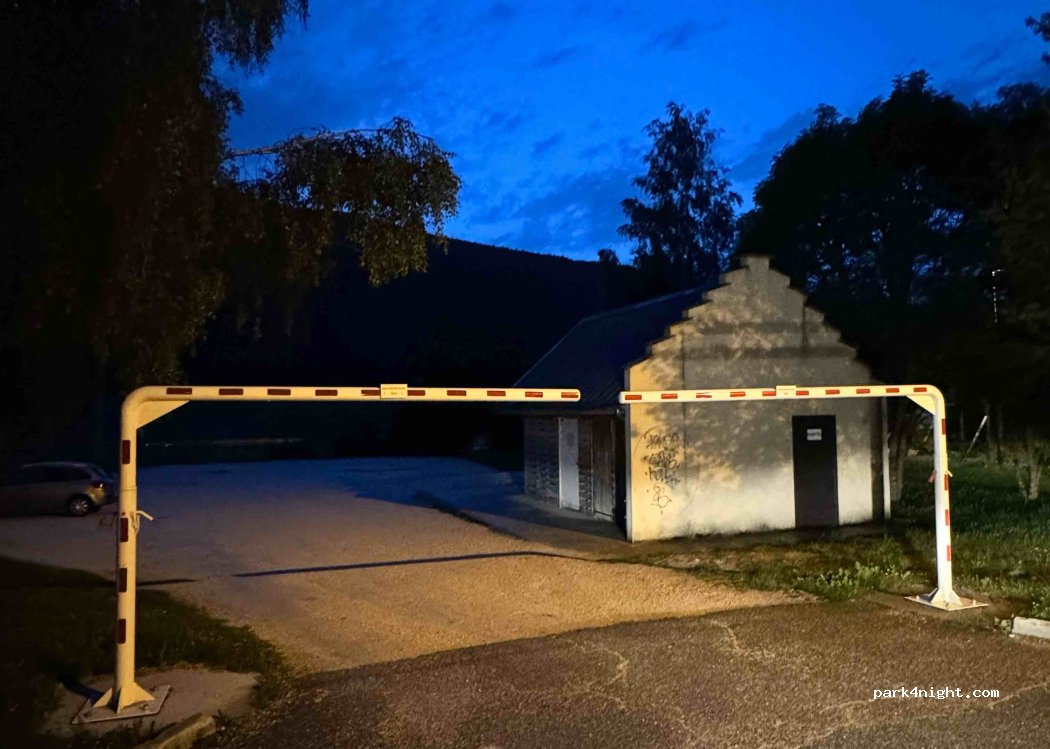 Parken in der Nähe des Skateparks und Pumptracks, Tankstelle und Supermarkt in der Nähe. Bänke, Picknicktische. Perfekt zum Übernachten.