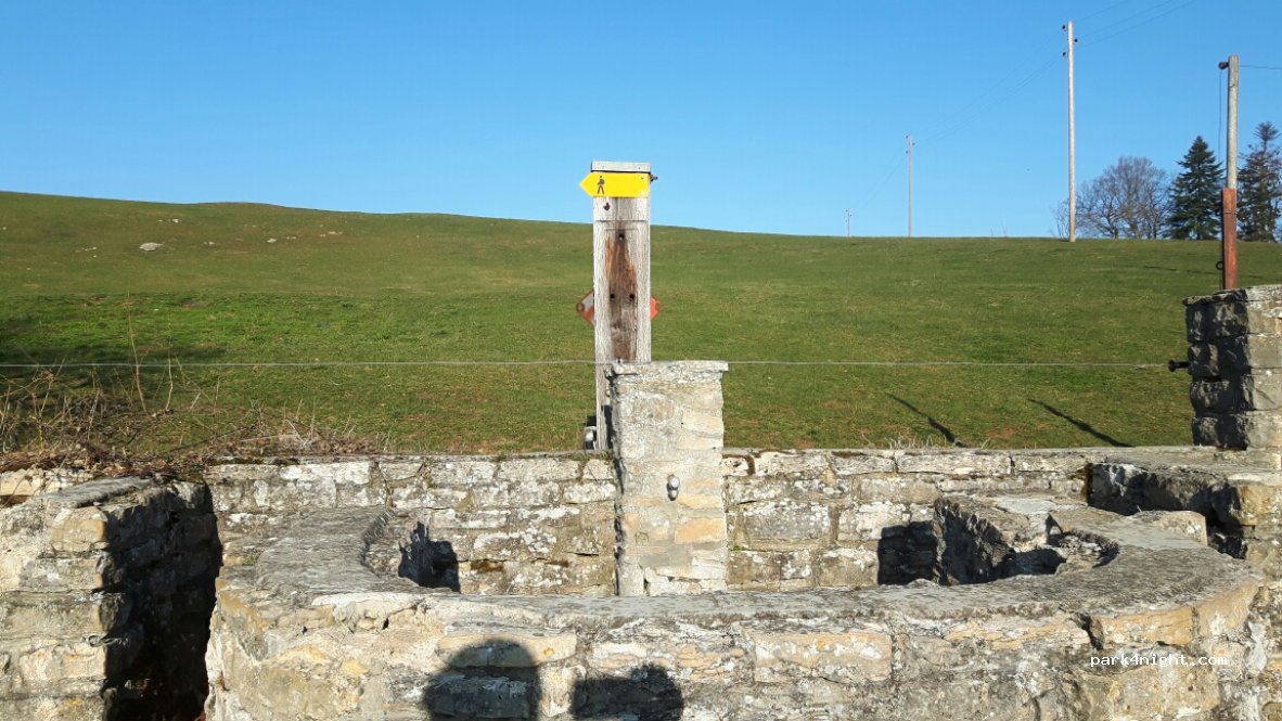 Enson Faux Park with flat gravel plaza and unobstructed view. Very little traffic during the night because access to two farms. Possibility to have livestock nearby during the summering period. Park to access the panoramic tower with views of the Alps on a clear day.