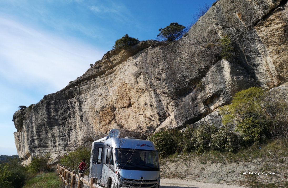 Vaison la romaine. At the foot of the medieval city. Public parking. Nice clear view. Trash can, light, no limitation. Small vehicles only