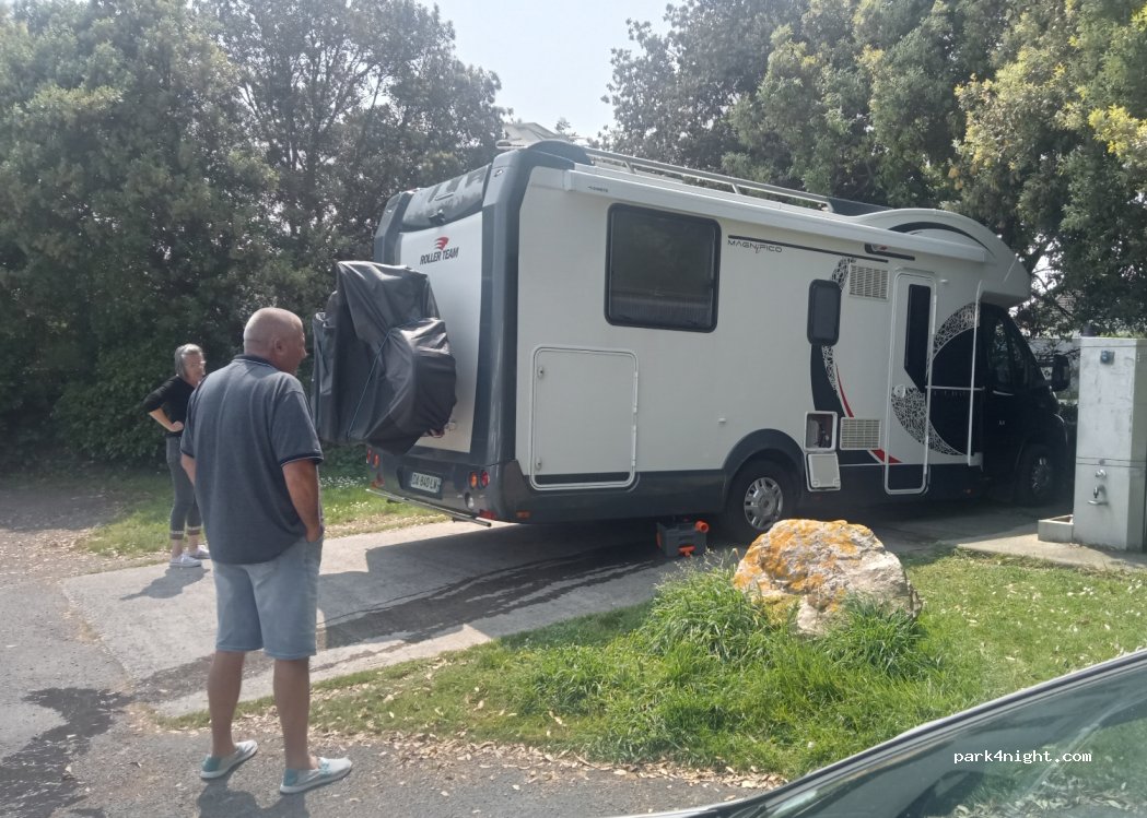 Une aire de dortoir a camping car... je me suis sentie un peu décalée avec mon vieux fourgon des année 1990 ! des énormes chars.. on peut tenir a 15 collé serré. ceci dit le parc est somptueux avec parcours de santé table de pic nic et la mer a 5 mm a pied. nuit paisible et possibilité de vidanger