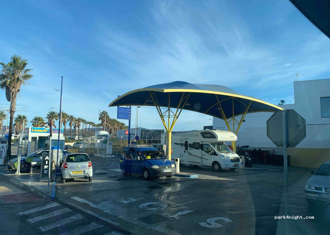 Buen sitio para tomar un café si te levantas pronto. Tienen buen café y leche sin lactosa, también tostadas y bollería a buen precio. Tienen lavadoras y máquina de lavado de coches, no sé si entra una autocaravana. No pongo 5 estrellas porque tiene duchas, pero son 5 euros por persona 15 minutos y no te dejan compartir. Eso sí, las duchas tienen buena pinta. Muy limpio el sitio