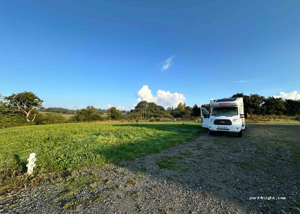 super acceuil des propriétaires, dans un cadre bucolique, très au calme,en pleine campagne, avec tous les services: eau propre,vidange eaux grises et vidange eaux noires et électricité le tout pour 10€ la nuit,franchement un excellent bon plan...et en prime du bon pain frais fait maison, je recommande vivement ce lieu