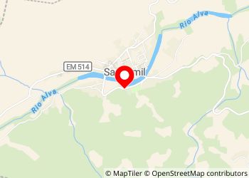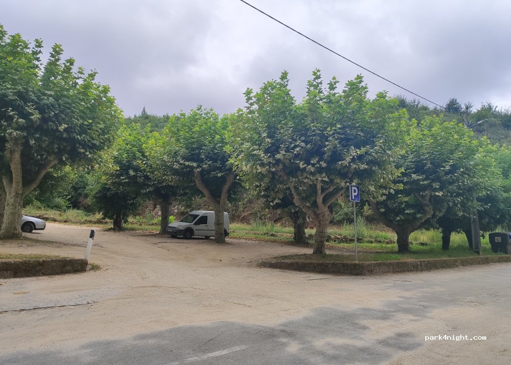 Parking beside small chapel, perpendicular to alley along SANDOMIL beach on Alva river, with nearby bar, baths and picnic area. Lot of big trees.