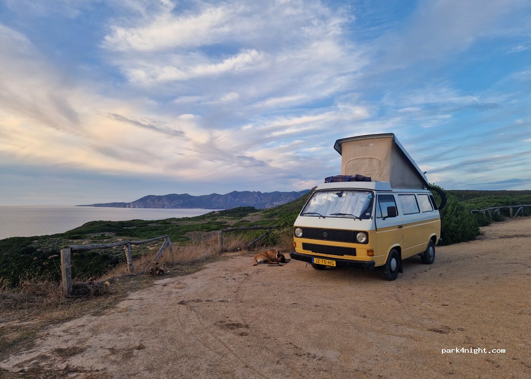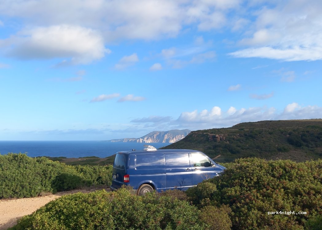 Vue extraordinaire. Le plus beau couché de soleil jamais vu jusqu à lors en Sardaigne. Plat. Mais.... Route passante au dessus, beaucoup de camions toute la nuit et le matin. Étonnant. Pas de services. Accès très accidenté mais ça passe en transporteur en y allant molo. On a nettoyé la zone : 2 sacs poubelles entièrs, 1 carton rempli de bouteilles de verre. Respectez la nature svp.