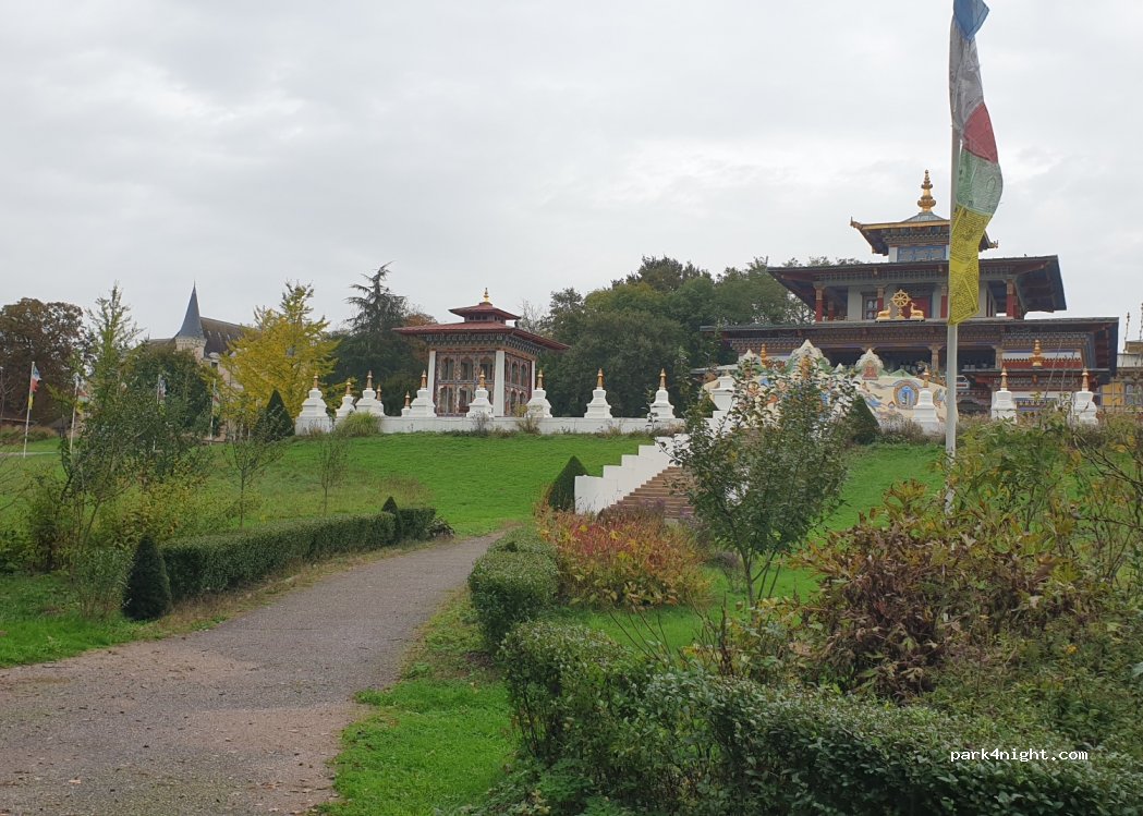 Parking très calme devant un magnifique temple bouddhiste.