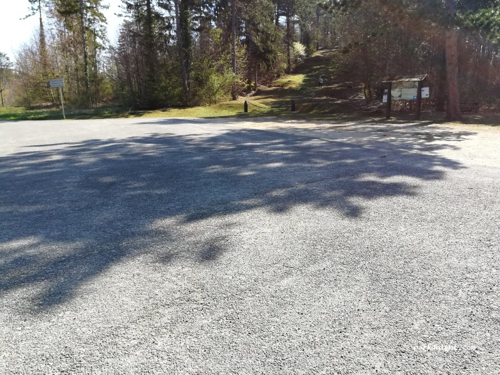 Flacher asphaltierter Parkplatz am Höhenrücken von Éparges