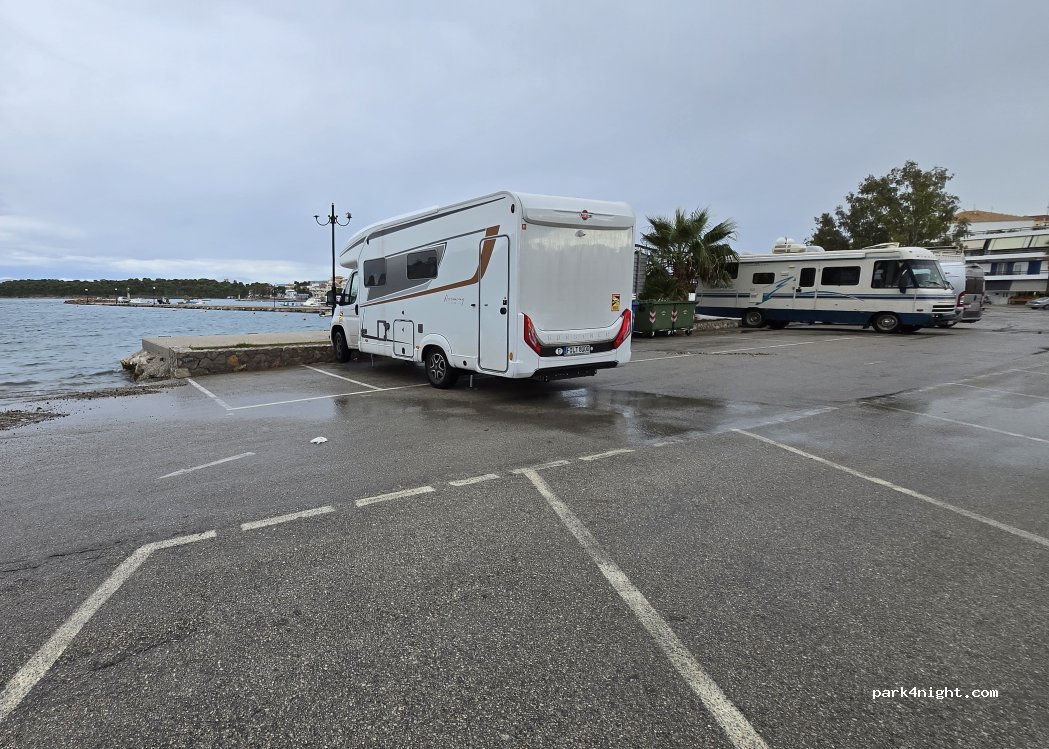 Parking sans service mais très tranquille la nuit, pratique pour aller prendre le ferry pour l'île d'Hydra (prendre le ticket à l'Office du tourisme). Joli petit village à visiter.