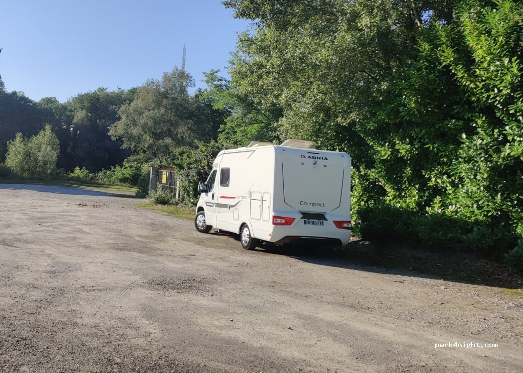 Parking du cimetière plat et un peu ombragé derrière la rivière . Nuit très calme.