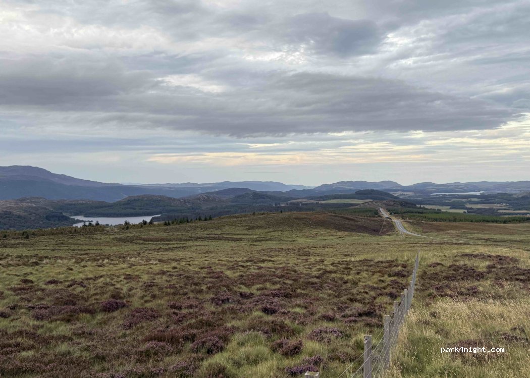 Emplacement incroyable, vue à 360° sur le Loch Ness et ses environs. Le lieu est au bord de la route en haut d’une montagne, mais il y a assez d’espace pour au moins 6 véhicules et la nuit la route est déserte. Si vous arrivez trop tôt attention il y a beaucoup de monde qui s’arrête pour prendre des photos, mais à partir de 19h/20h c’est bon.