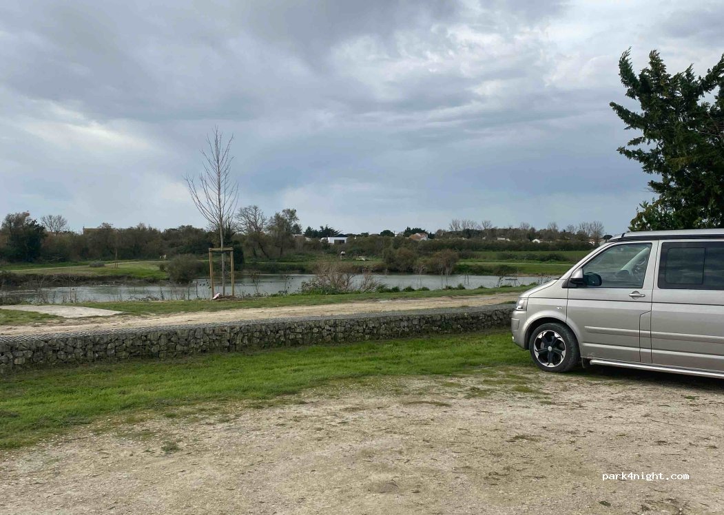 Parfait pour une nuit au calme ! Charmante compagnie de nombreux canards qui ont ravis nos enfants ! Super coucher de soleil. Un habitant nous à expliqué qu'ici il y avait plein de maisons, et que depuis la tempête Xynthia, c'est aménagé ainsi. La mer est toute proche de ce lieu.