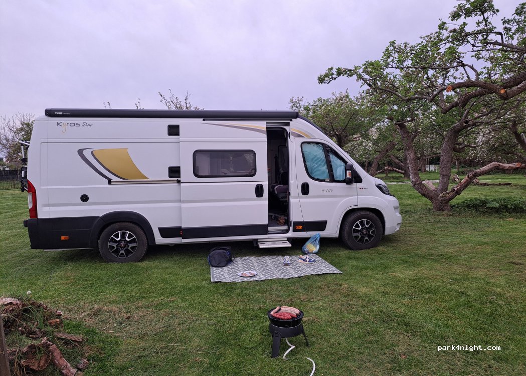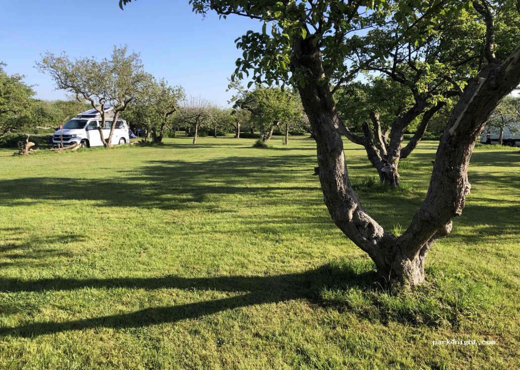 Ein schöner Platz zwischen den Obstbäumen und einer netten Betreiberin. 2 Sterne müssen wir abziehen, da zum einen die Autobahn unweit und 24h sehr laut zu hören und das Trampolin defekt ist. Die Hausherrin lässt es aber leider reparieren. Duschen und WC sind in Ordnung - Wifi war keins vorhanden - hat uns aber nicht gestört. 2 Erwachsene und 2 Kinder mit Womo 41,50€ ohne Strom sind ordentlich