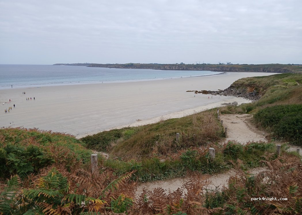 Standen hier zwei Nächte, während wir bei [Surfing Iroise] einen Surf-Kurs gemacht haben. Zu Empfehlen! Plätze sind etwas schräg aber in Ordnung. Es gibt direkt Mülleimer am Parkplatz. Keine Verbotsschilder und die Polizei fährt vorbei, scheint hier geduldet zu sein, man sollte aber natürlich kein Camping betreiben. Es ist nur ein Parkplatz! Tagsüber viele Surfer und hier parken auch Busse.