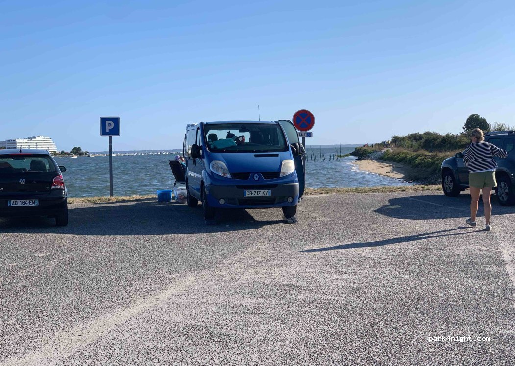Parking de bout de jetée et à côté des cabanes d’ostréiculteurs, face à la ville d’arcachon et du bassin, au calme. Poubelles disponibles. Idéal pour une dégustation d’huîtres.