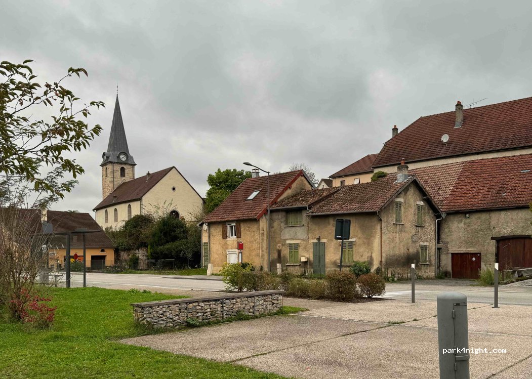 ca. 200 m weiter im Dorfzentrum ist ein PKW Parkplatz für kleine Vans sehr gut für Übernachtungen geeignet. Mit Brunnen direkt am Doubs. Schöner Ausgangspunkt für Läufe und Radtouren.