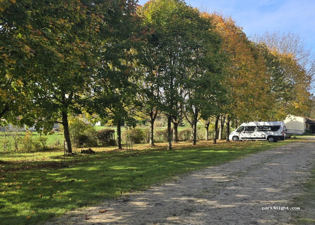 Endroit paisible et calme. Possibilité de se garer sous les arbres, une table de picnic. Des toilettes offerts par la mairie. Une très bonne nuit passée.