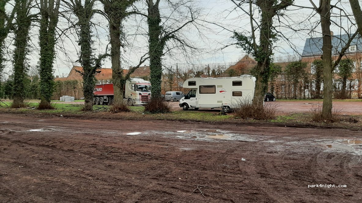 Niet zo'n mooie parking, maar meer dan voldoende voor een overnachting. De andere parking in Belœil, aan de orangerie, us inderdaad gesloten.