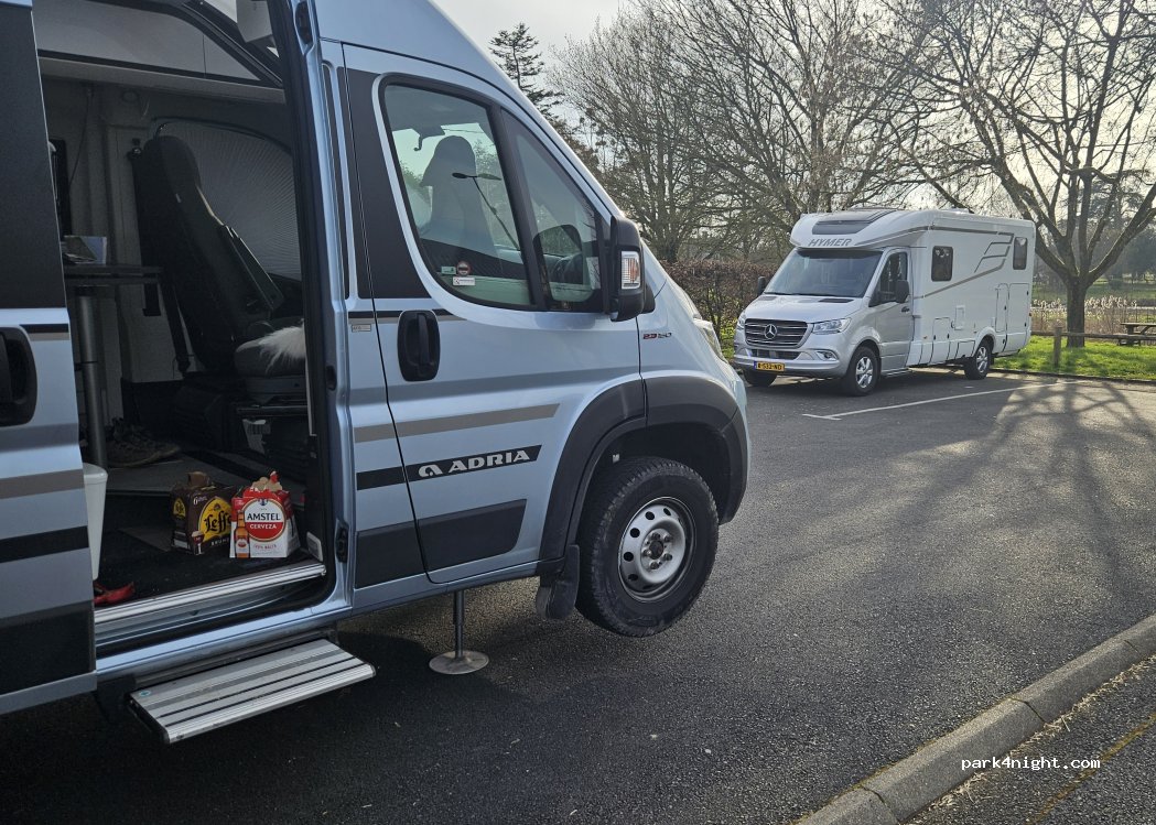 Prima plek voor een overnachting. Dump station voor grijs en zwart en watervul punt. Plek is een beetje kort. Dus met aanhanger er achter steek ik een beetje uit. Er is nog een camper plaats dicht bij aangegeven in de App. Maar dat is de zelfde plaats.
