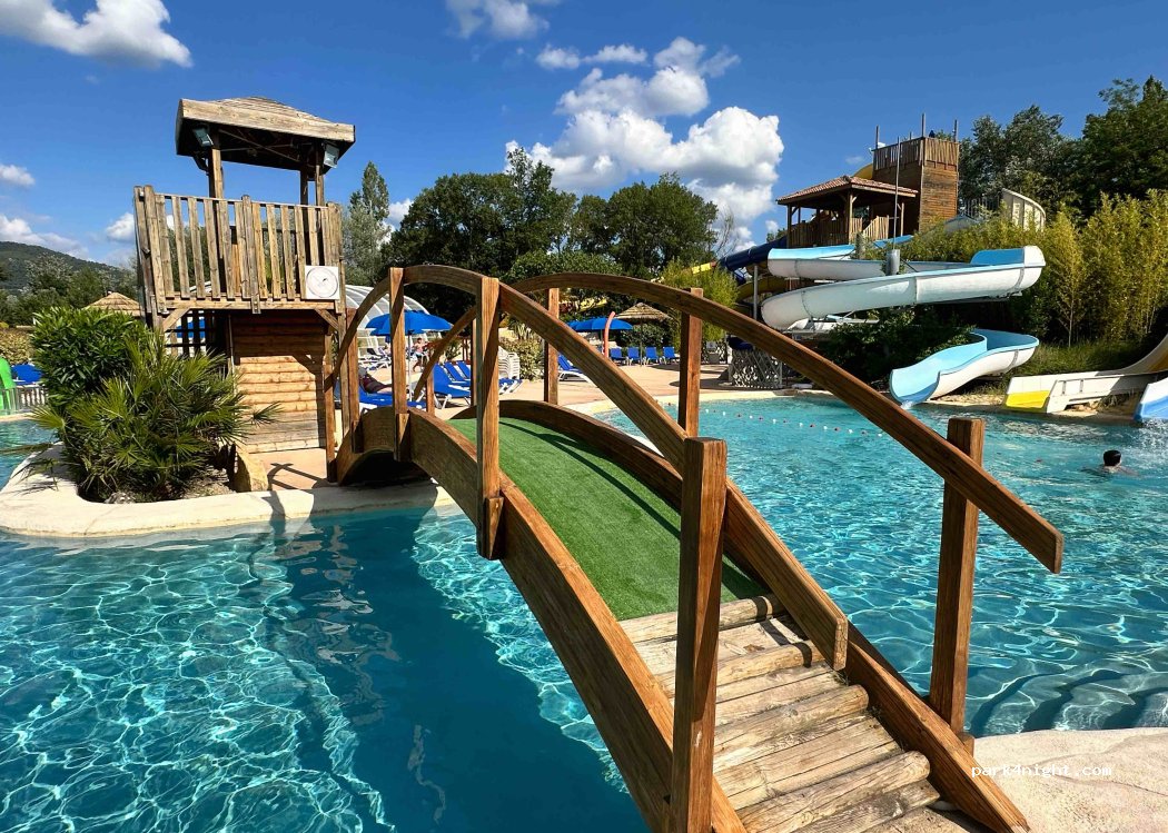 Todo el confort con parque acuático (toboganes, spa, piscina cubierta climatizada, etc.). Es un camping permanente.