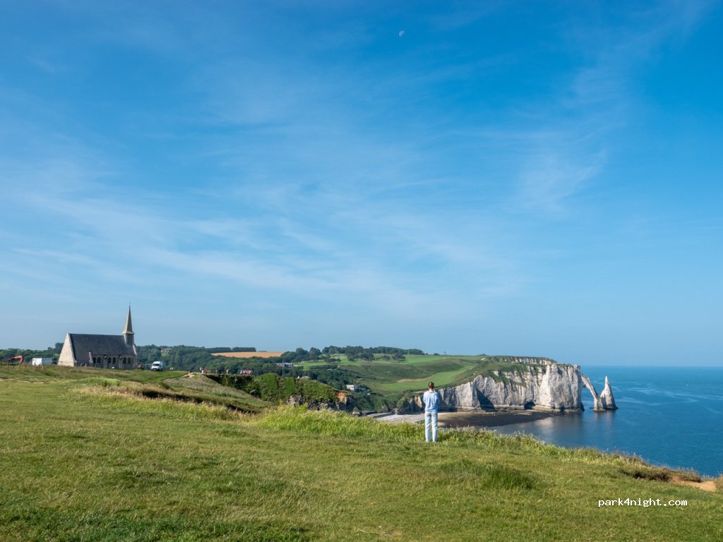 Super Platz. 36 €/Nacht für 7 m Wohnmobil mit 2 Erw und 2 Kindern inklusive Strom gezahlt. Schöne Alternative zu überfüllten Etretat Campingplatz und Womo Stellplatz.