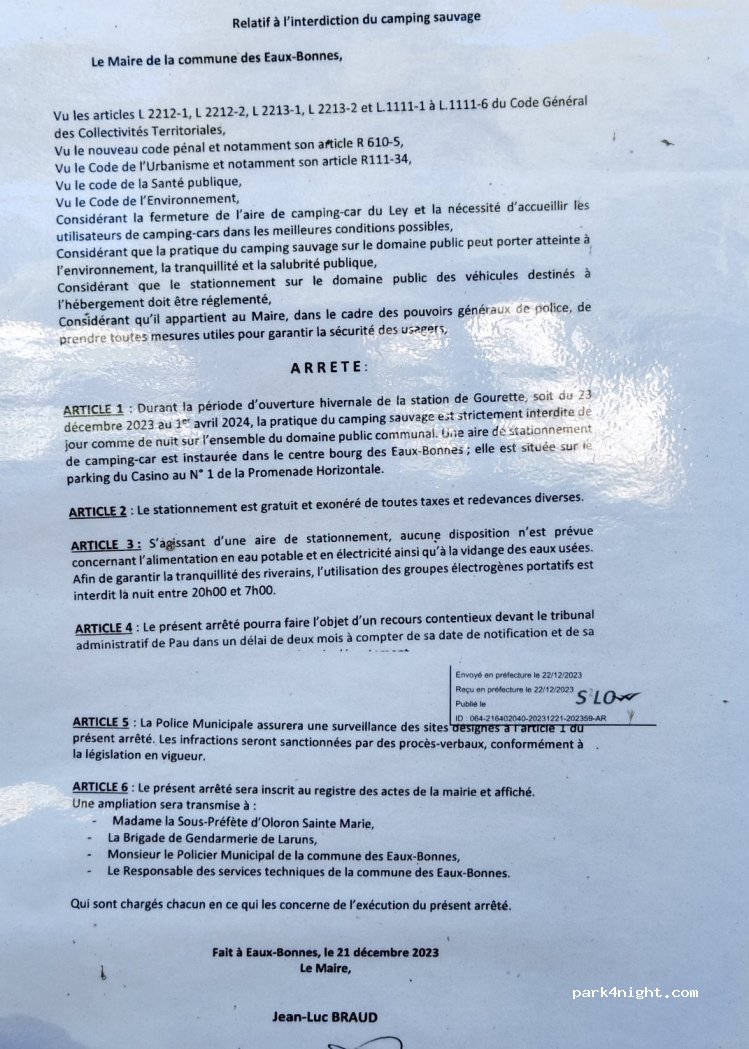 Nous avons passé 3 nuits calmes. Nous sommes au pied de Gourette avec plusieurs possibilités de randonnée ou de Terra aventura. Merci à la municipalité