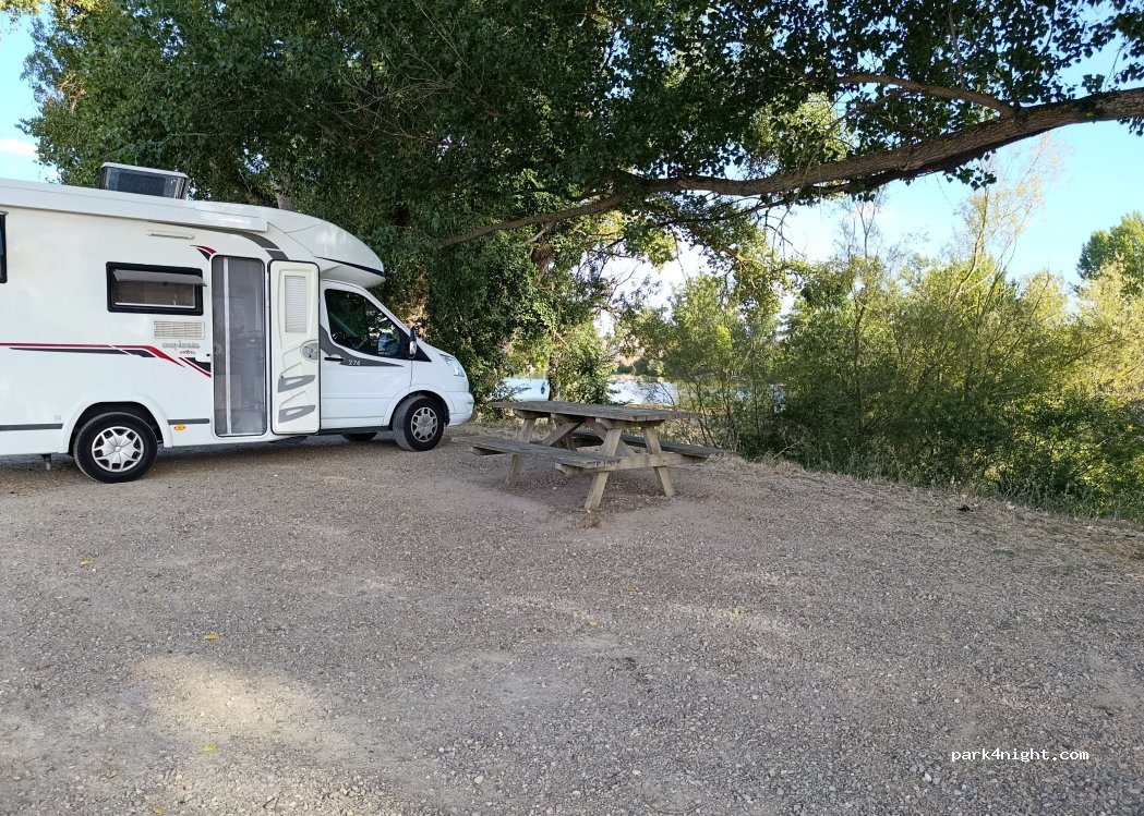 Lieu très sympa ombragé. Le bémol c'est l'odeur de la rivière le soir, pas très agréable... Mais bonne nuit passée sans problème. Des poubelles sont à disposition.
