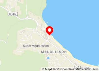 Markt parkeerplaats, tegenover het meer van Maubuisson. Mogelijkheid om buiten het seizoen te overnachten (behalve woensdag marktdag) behalve 1/04 tot 30/09, zeer rustig met adembenemend uitzicht op het meer.