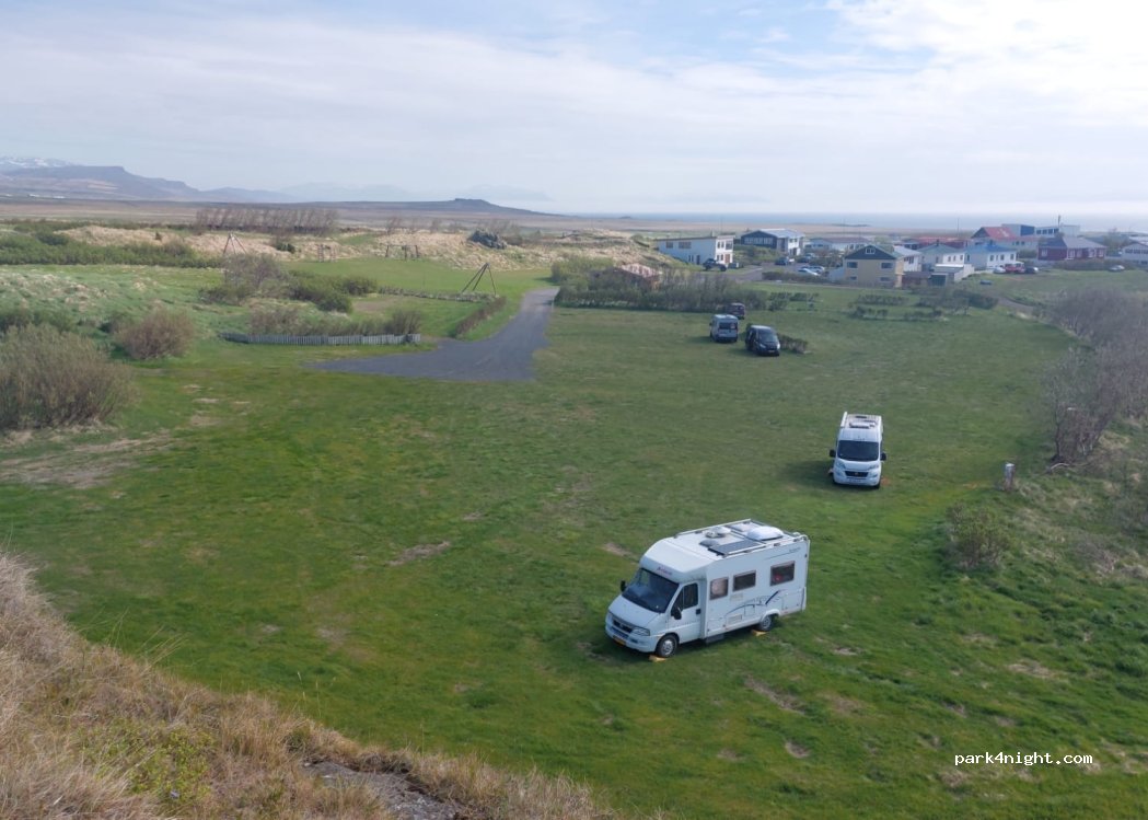 Nette, schöne Platz am rande Dorf. Grüne Wiese, beim Regen ziemlich rutschig. Kleine Küche, je 2 Toiletten. Dusche nur 1, kostet 500 ISK / 8 Minuten. Eigenthümer kommt abend und kassiert. Kartenzahlung möglich.